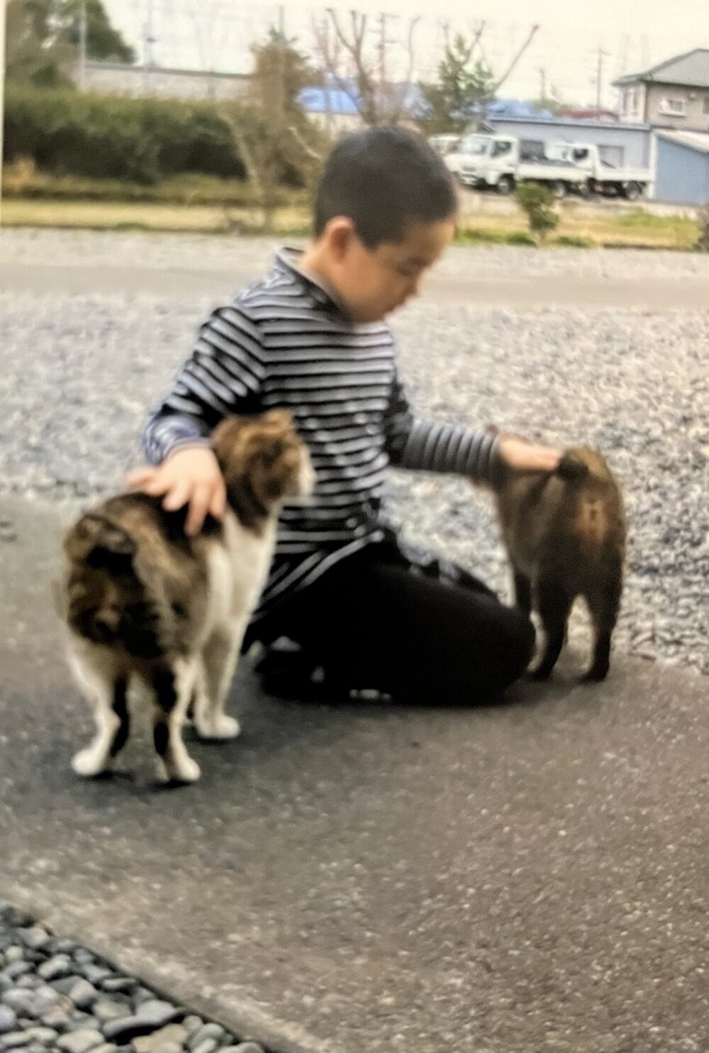 夕方、外でキャッチボールをしている住職と息子君、きょうこさんはときどき球拾いに走りながら吾輩のおなかをなでなでする。