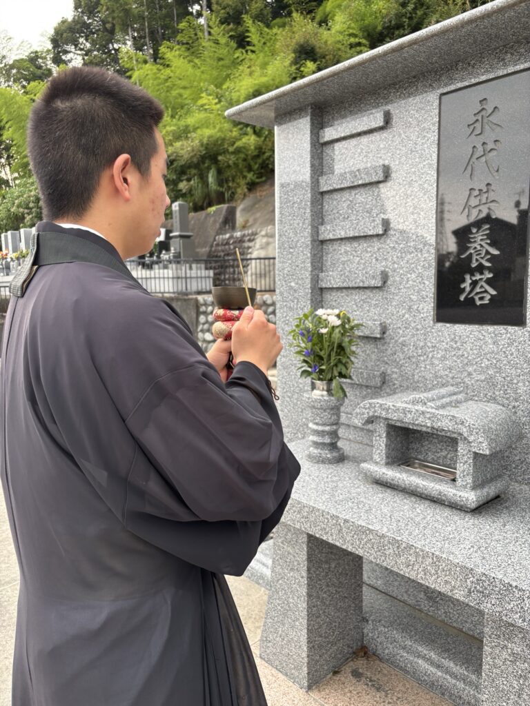 毎年15日はお墓でのお経を息子が行います
