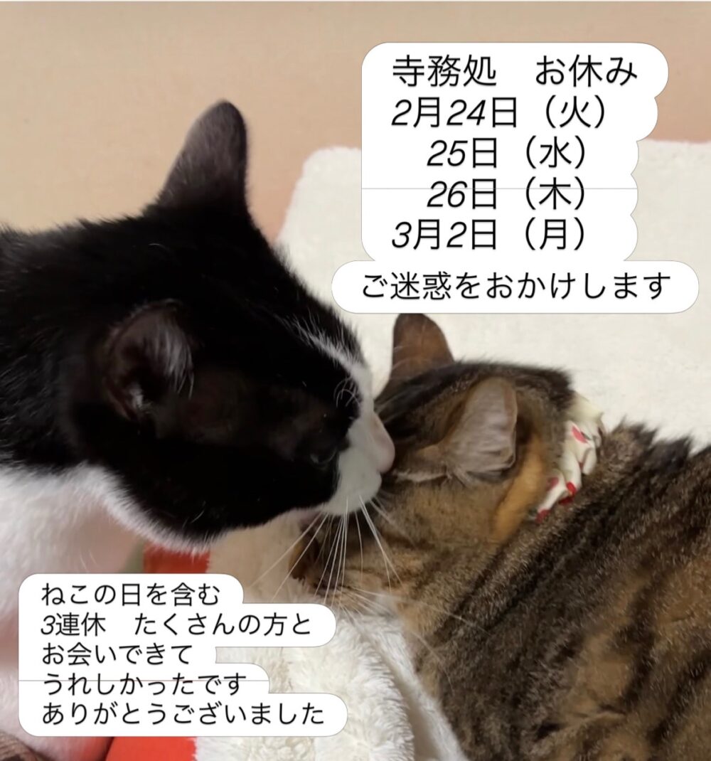 寺務処お休みのお知らせ