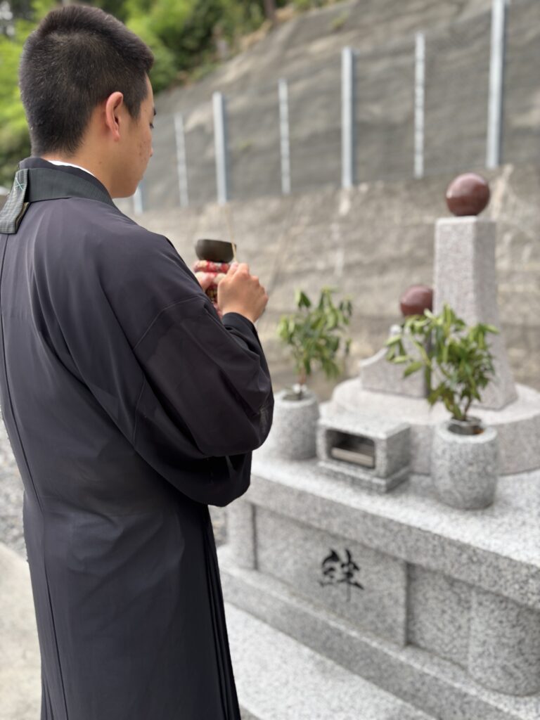 毎年15日はお墓でのお経を息子が行います今年でちょうど10年めを迎えました 階段をのぼる姿を見ながら 大きくなったなと(からだだけでなく と) お経をききながら 声がかわったなと皆さまに育てていただいていることに感謝ですありがとうございます😊... -